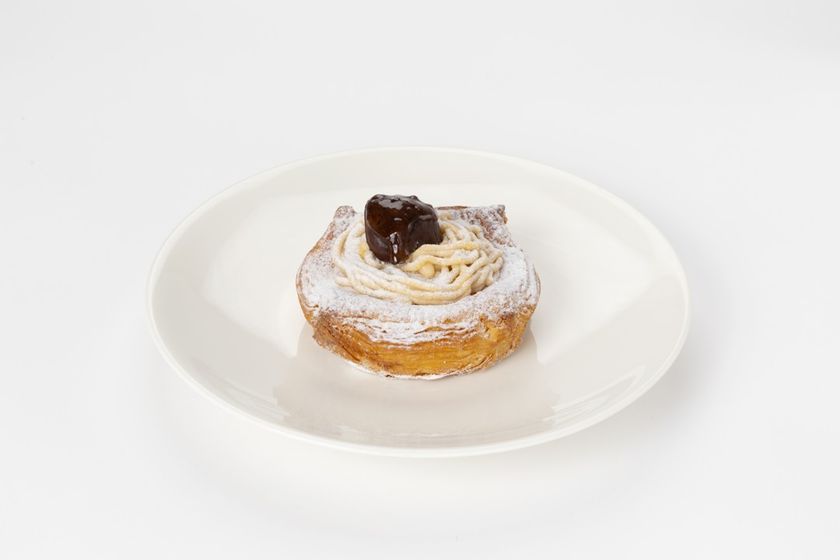 茨城県笠間の栗ペーストを使用したル・グルニエ・ア・パンのオリジナルクロワッサンマロンです。ペーストを絞り、クロワッサンでモンブラン風に仕上げた一品です。