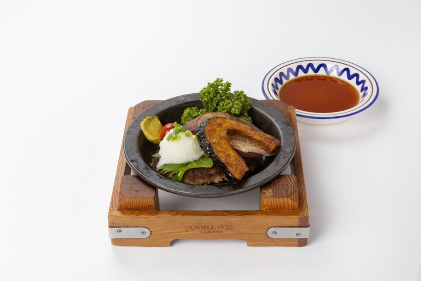 茨城県産の甘くてなめらかな「紅はるか」とホクホク食感が特徴の「那珂かぼちゃ」を焼きたての和風ハンブルグステーキにのせたアトレ上野店限定メニューです。