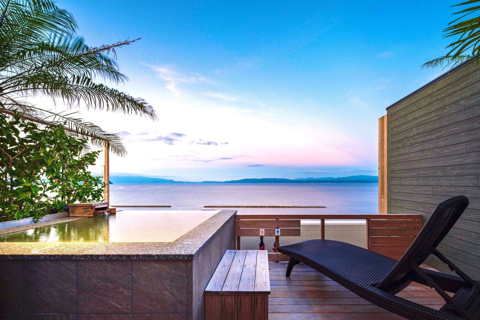 お部屋や露天風呂から錦江湾と大隅半島の景色をご覧いただけます。