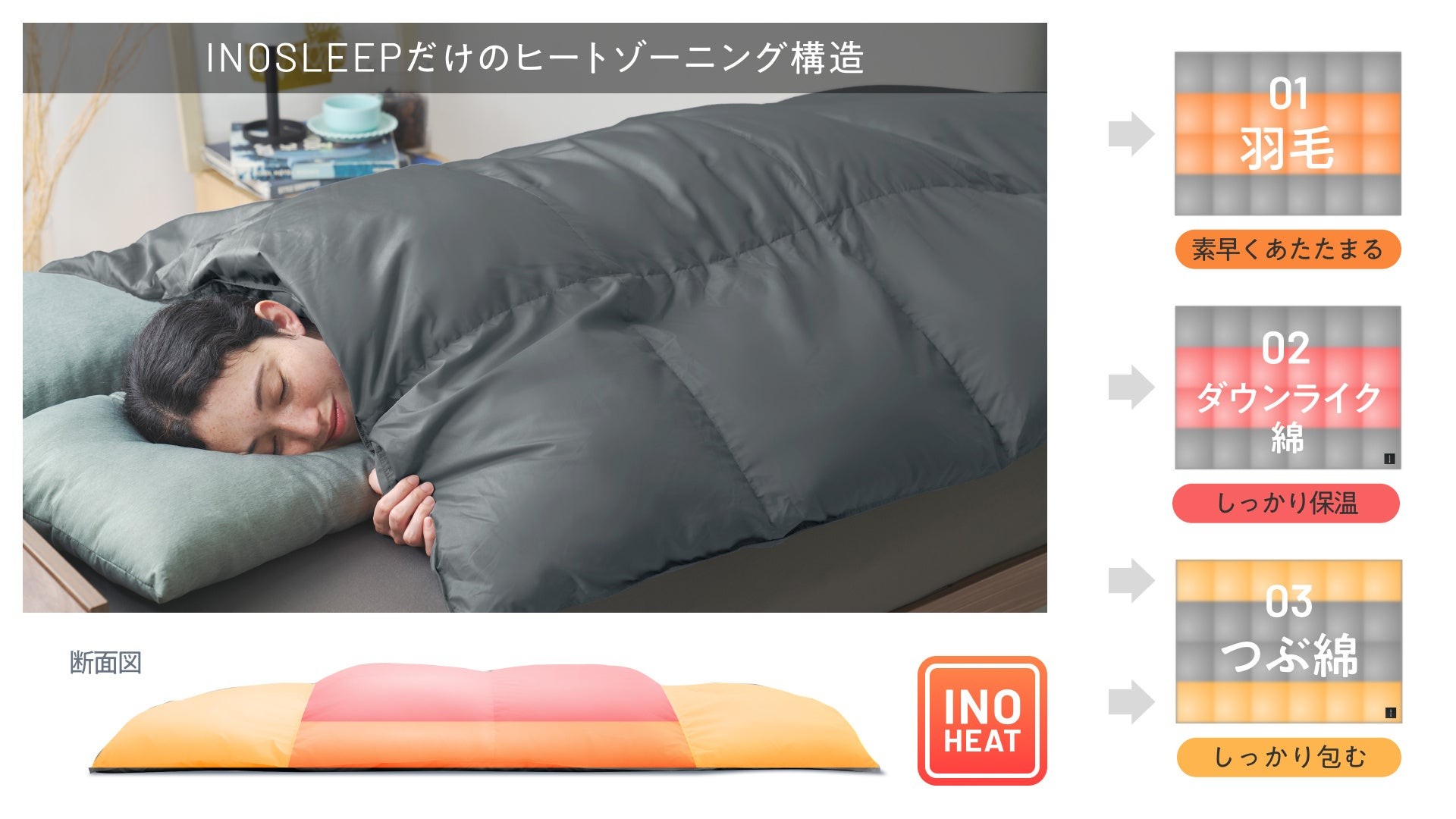 2025.11.26株式会社KURUKURU(本社:東京都中央区銀座、代表取締役:関沢康寛)が展開する寝具ブランド **「INOSLEEP」** は、2025年11月17日より、保温性、弾力性、寝心地を追求した「 **羽毛ハイブリッド掛け布団」** を販売開始いたしました。INOSLEEPが毎日の眠りを、新しく健やかに変えていきます。