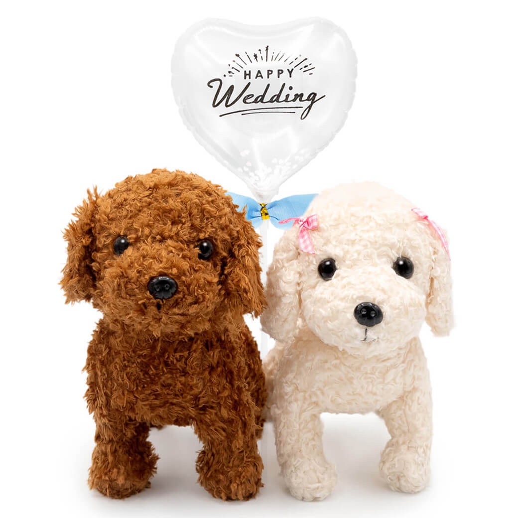 - 結婚式のお祝い:新郎新婦をイメージした犬種のペアセットとお祝いメッセージを一緒にお届け