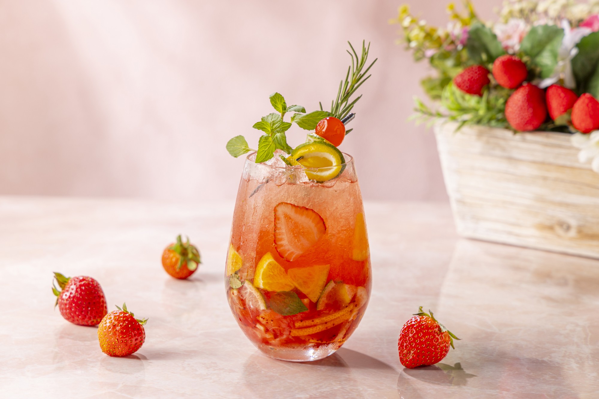苺とオレンジ、ライム、レモン、グレープフルーツの4種類の柑橘果肉を贅沢に使用した、果実の旨味にあふれたノンアルコールドリンクです。フレッシュミントとトニックウォーターの爽やかな風味がストロベリーアフタヌーンティーを華やかに彩ります。