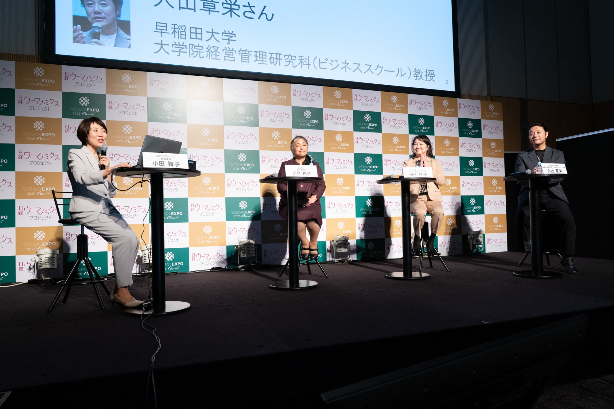 ⼊⼭章栄さん(早稲⽥⼤学ビジネススクール 教授)、及川美紀さん(Toget-HER 代表理事)、パトリック・ハーランさん(タレント)、佐々⽊明⼦さん(テレビ東京 コンテンツ戦略局フェロー)