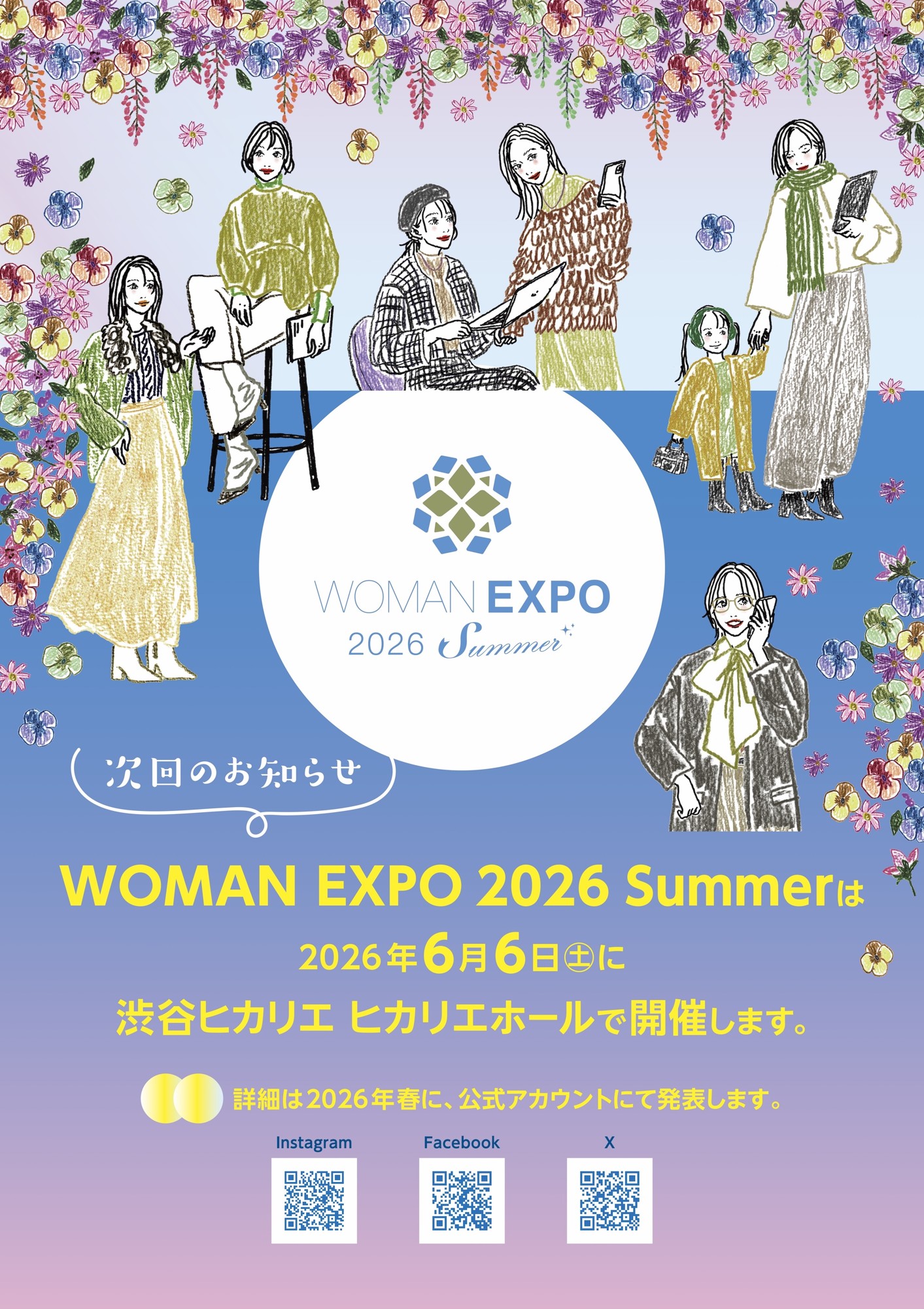 次回、「WOMAN EXPO 2026 Summer」の開催が渋谷ヒカリエ・ヒカリエホールにて2026年6月6日(土)に決定しました。詳細は2026年春に、公式アカウントにて発表となります。