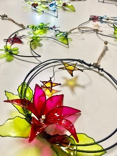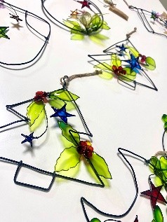 令和5年2月に、宇都宮市に開所された障がい者就労継続支援B型事業所「就労支援あんと」。障がいのある方がワイヤー形成から色付け、パーツの取り付けの工程をメンバーで分担・協働して作り上げた、透明感あるディップアート雑貨を販売します。クリスマスリースも販売予定。クリスマスリース各種1,000円