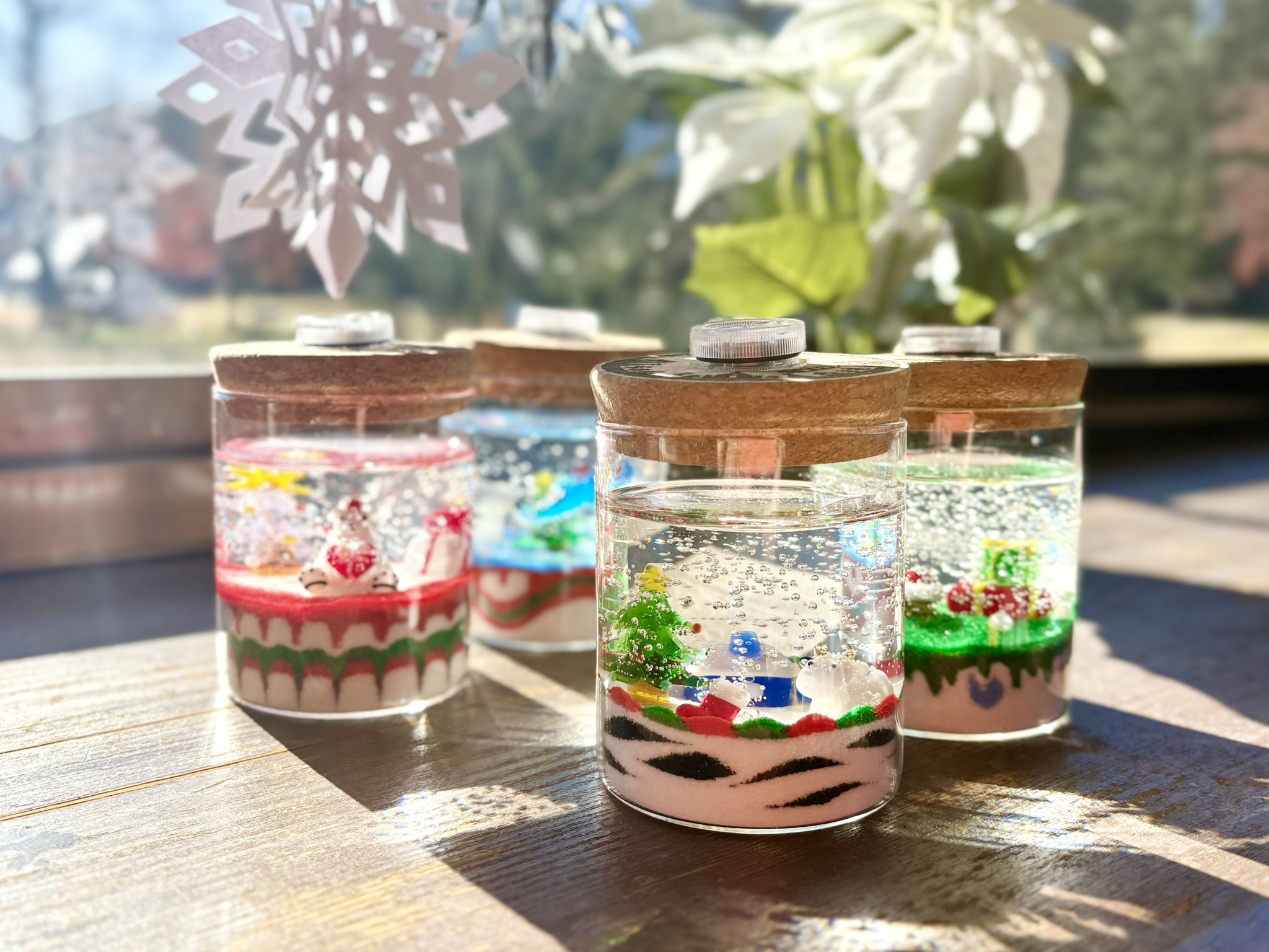 屋内の体験工房では、クリスマス限定デザインのジェルキャンドル作りを開催。