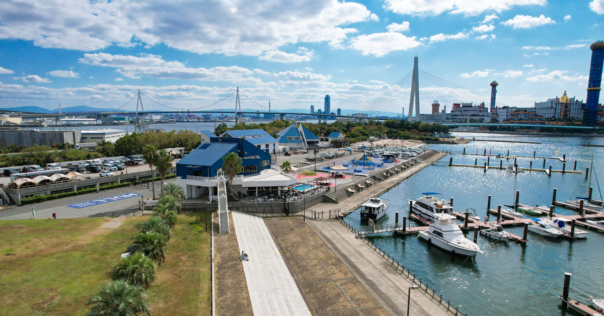 大阪市内からのアクセスも抜群。都市の喧騒からすぐの場所にありながら、海・空・風を感じる非日常の体験ができる「大阪北港マリーナ」は、マリンアクティビティ・クルージング・レストランが融合した複合型レジャー施設です。
