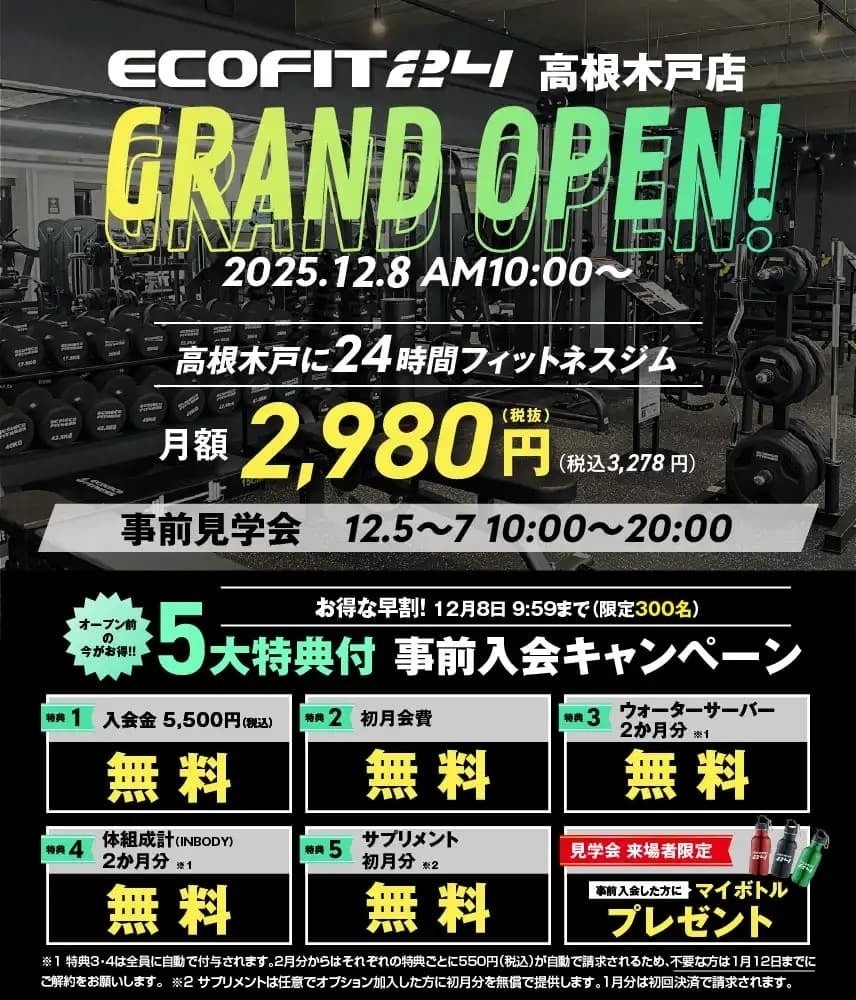 エーイーシー株式会社が展開する24時間フィットネスジム「エコフィット24」は、2025年12月8日(月)に「千種葵店」(愛知県名古屋市東区)と「高根木戸店」(千葉県船橋市)を同時オープンいたします。