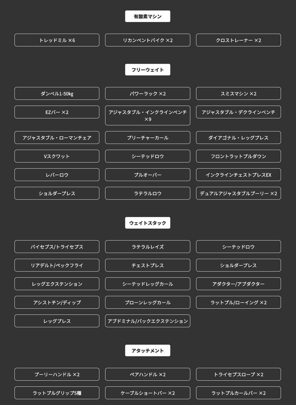 ダンベルやケーブルマシン、パワーラックなど基礎トレーニングに欠かせない設備も充実しています。