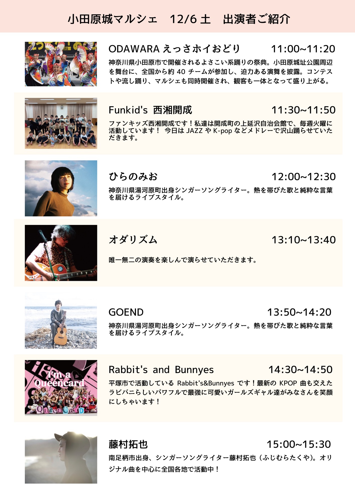 「おだわらんらんフェスタ」とのコラボレーションにより、地元アーティストや人気パフォーマーが二の丸広場のステージを華やかに彩ります!