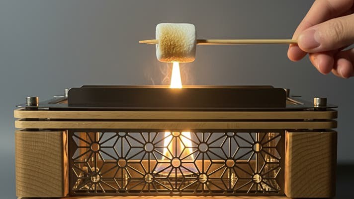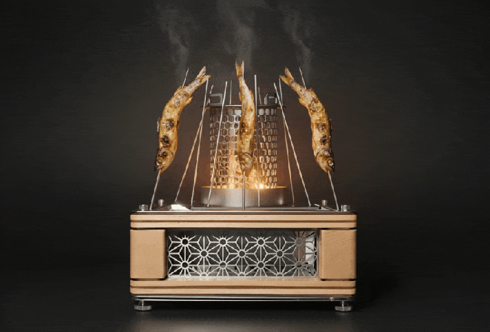 炎の光・音・香り・ぬくもり・味わい──五感を呼び覚ます設計で、鑑賞から囲炉裏焼き、卓上調理、インテリア暖炉まで、これ一台で多彩に使える多機能卓上火鉢です。