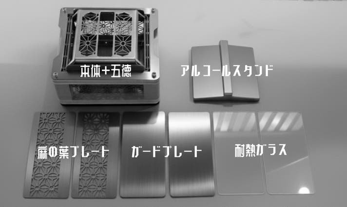 囲炉裏焼き、鑑賞、湯煎、卓上調理まで、五徳・耐熱ガラス・アルコールスタンドなどを組み替えて複数の使い方に対応します。