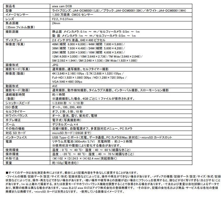 【aiwa cam DCB】 : https://aiwa.net/products/aiwa-cam-dcb/
