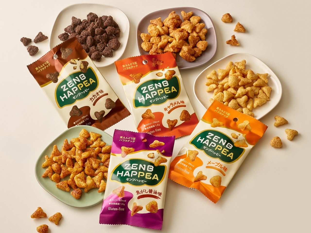 2025.12.10株式会社ZENB JAPAN(ゼンブ ジャパン)(愛知県半田市、以下 ZENB)は、黄えんどう豆でできたザクっと食感のパフスナック「ZENBハッピー」シリーズより、甘口醤油たれを香ばしく焼き上げた甘じょっぱさが楽しめる新商品「ZENBハッピー焦がし醤油味」を2025年12月10日(水)よりZENB公式サイト(https://zenb.jp)や他ECサイト(アマゾン、楽天市場、Yahoo!ショッピング、Qoo10)で新発売します。