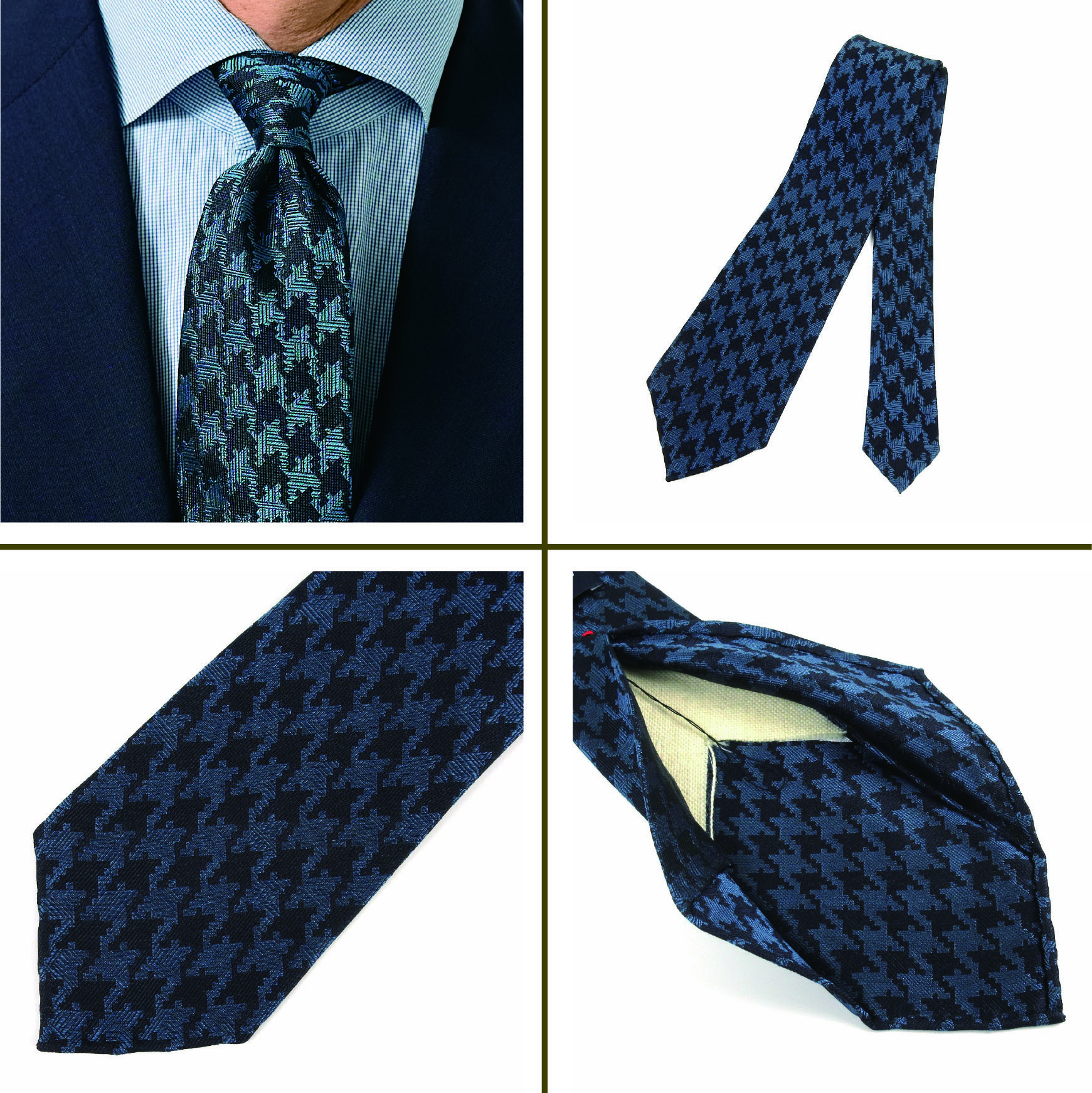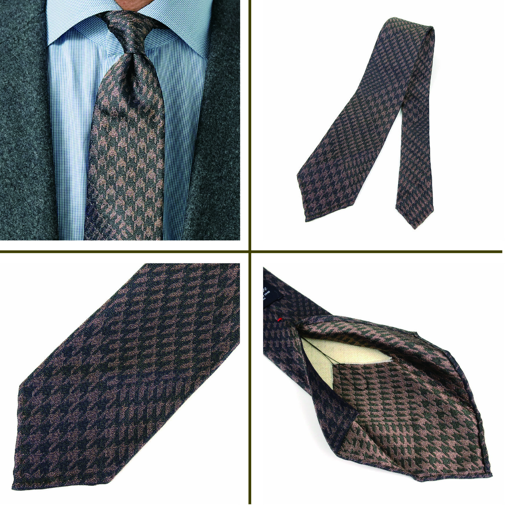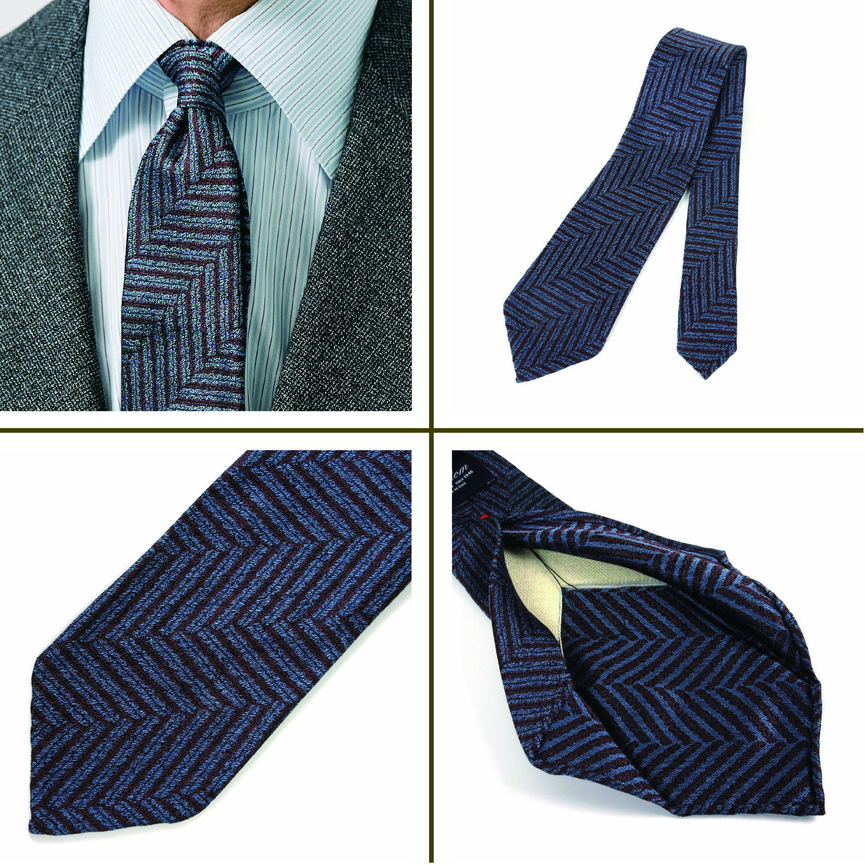 「ジャカードタイを軽く仕上げるのはとても難しいのですが、アラ商事はもともと極上のシルクジャカードタイで発展してきたメーカー。織り方や使用するシルク糸の選定、フィニッシングの工程などにとことんこだわっていただき、今回、驚くほど軽いジャカード生地が完成しました。クラシックなスーツにも映える重厚な見た目なのに、着用すると抜群に軽い。そんなギャップを楽しんでいただけたらと思います」(四方さん)