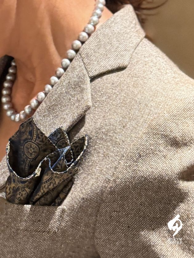 これまでポケットチーフというと男性向けのイメージがありましたが、高市首相を筆頭に企業や組織の顔として女性が様々なシーンで注目を集めることが増え、甘すぎず、硬すぎないアクセサリー的な要素として、このRIKYU CHIEFはおすすめです。
