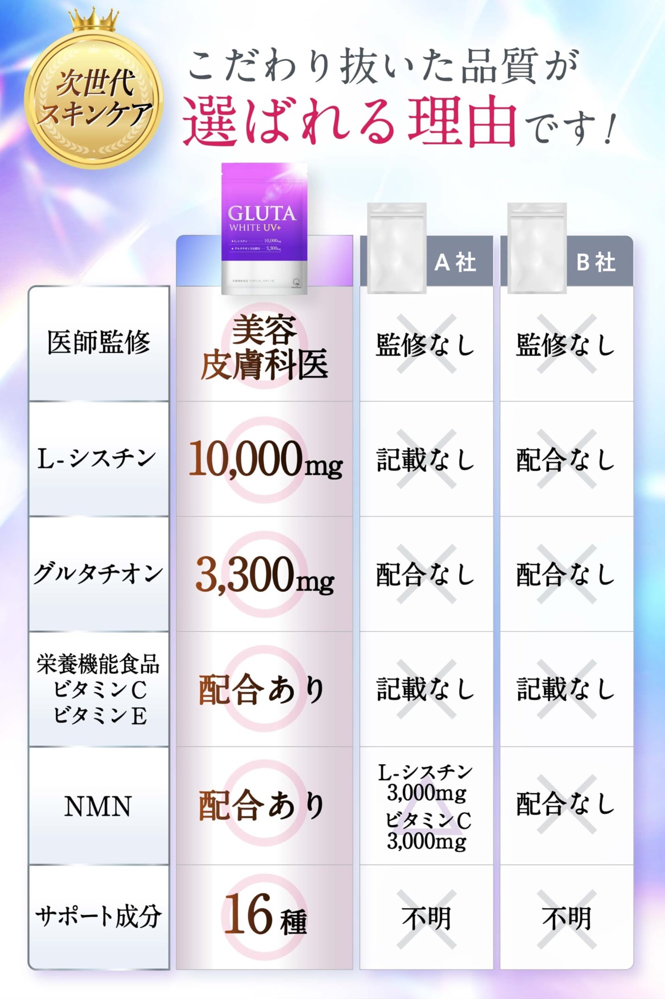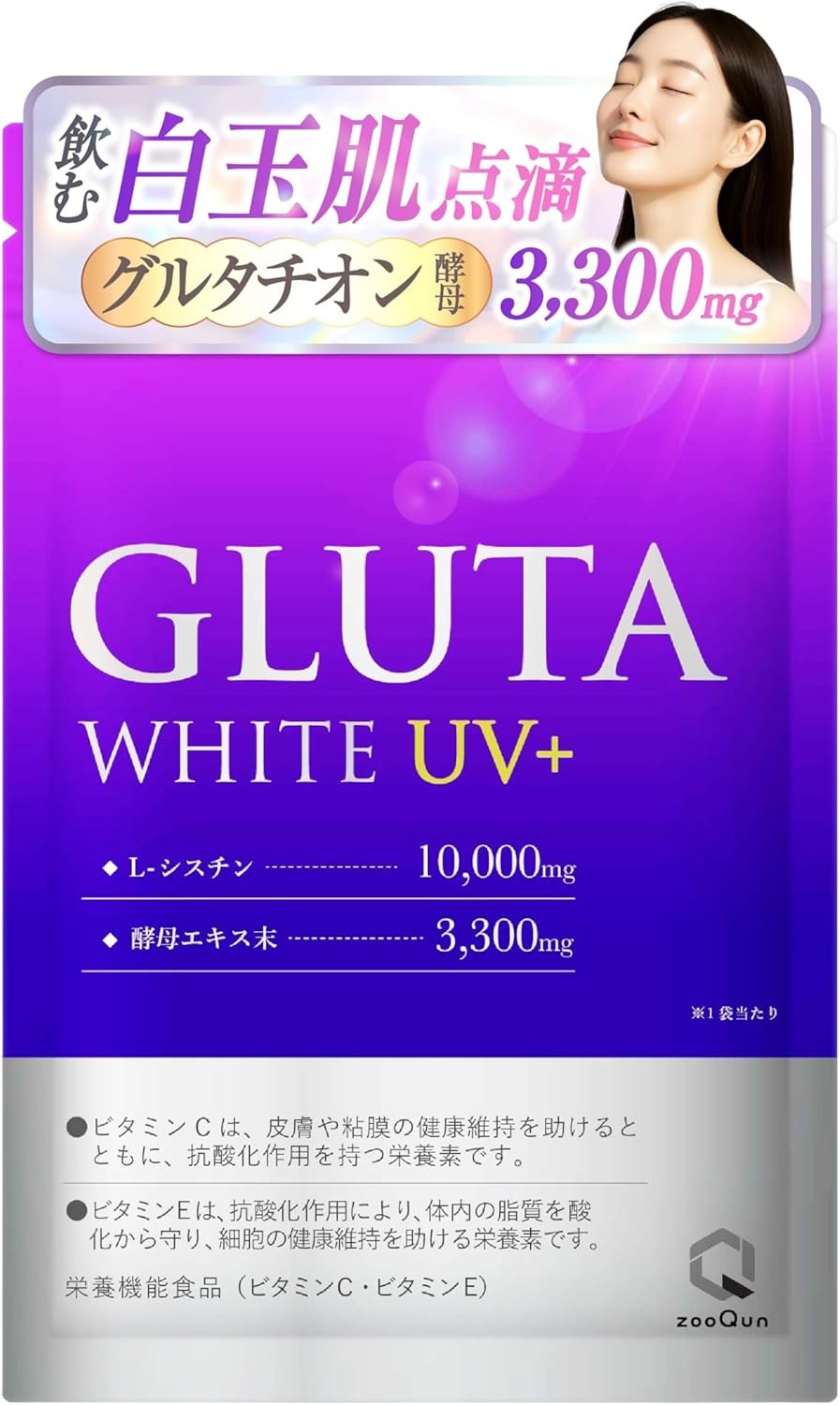 Amazon | 【飲む美容白玉点滴】 インナーケア サプリ 【 グルタチオン 3300mg X L-シスチン 10000mg のWパワー】【美容皮膚科医が監修】【 ビタミンC 美容サポート成分16種贅沢配合 】 NMN アスタキサンチン GLUTA WHITE UV+ 栄養機能食品 (1袋) | zooQun | プラセンタ : https://www.amazon.co.jp/dp/B0FFGQD2N9