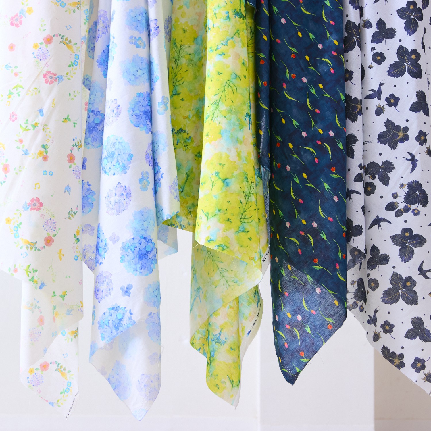 絵描きでデザイナーの、一栁 綾乃さんとのコラボ生地です。自然や植物をモチーフに、季節の変化を感じる暮らしの中で感じたインスピレーションを布に落とし込んでいます。