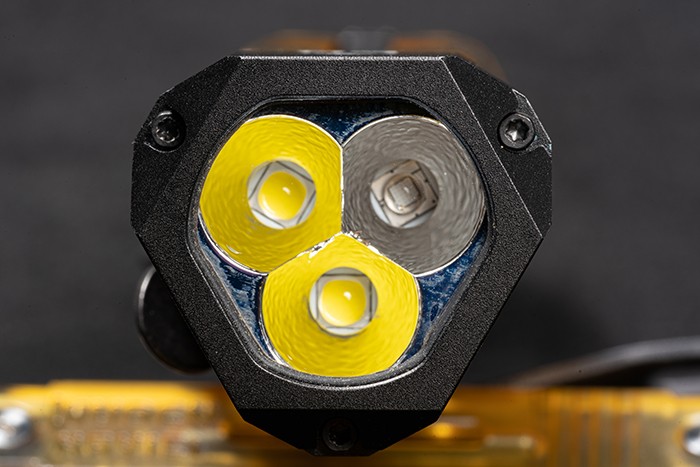 メインライトの明るさモードはHigh-Med-Lowの3種類です。Highモードが明るさ最大1300ルーメン、最大点灯時間はLowモードで30時間です。
