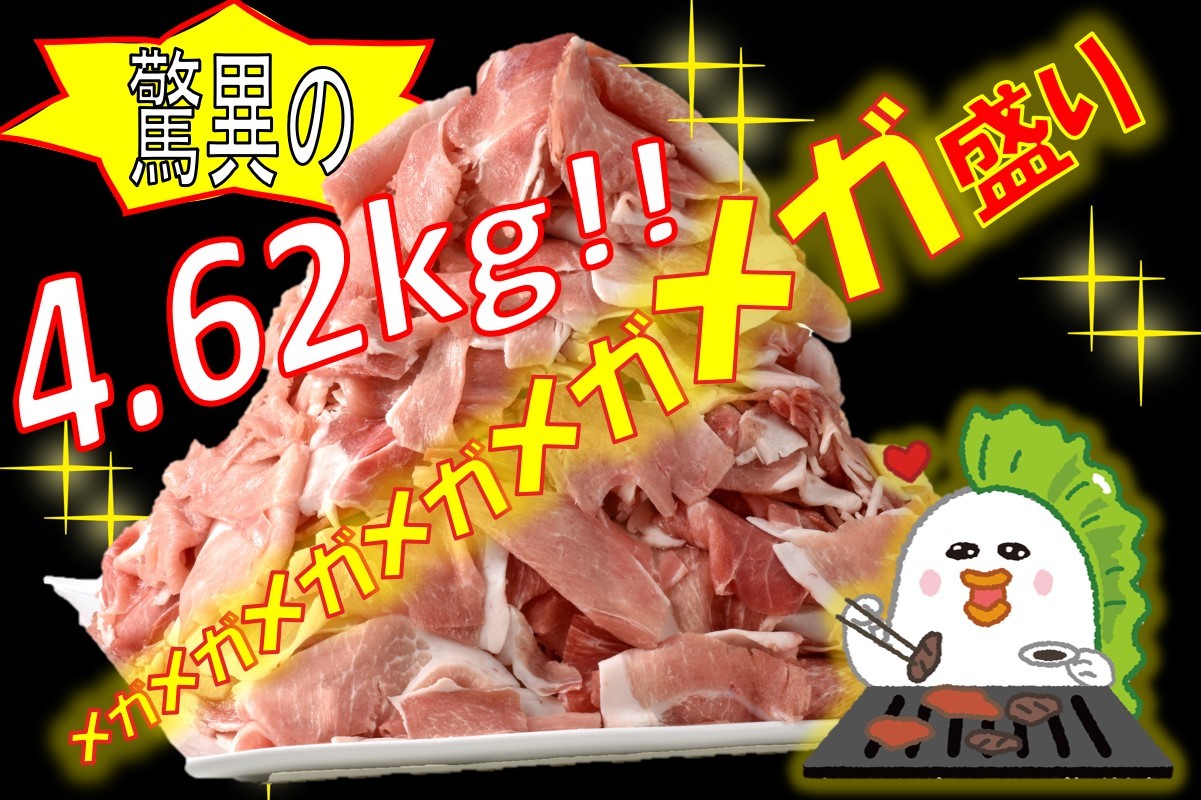 炒めもの、豚汁、焼きそばなど、色々なお料理に活躍する切り落とし肉を約4.6kgの大容量でご用意しました。