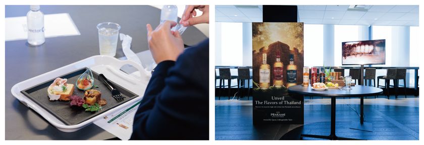 ご来場いただいた皆様には、スコットランド北部の港町で生まれた「海のモルト」OLD PULTENEY 12年のかすかな塩気をスモークサーモンとホタテのシーフードに合わせた一皿、スペイサイドの伝統を受け継ぐSPEYBURN 10年の華やかな香りをウイスキー煮込みのビーフシチューパイで表現した一品、そしてタイ初のシングルモルト PRAKAAN SELECT CASKの爽やかな香りをレモンケーキと生ハムのタルティーヌで楽しんでいただくなど、各ウイスキーが持つ個性豊かな香りや味わいを最大限に引き出すオリジナルのペアリングメニューをご体験いただきました。