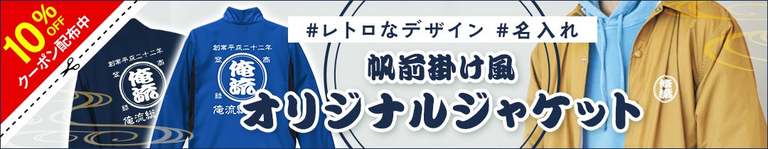 2026.01.13株式会社太陽(所在地:千葉県匝瑳市飯倉台28-11、代表取締役:片岡正徳)が展開する「おもしろTシャツの俺流総本家」では、名入れ・日付入れ可能な、レトロなデザインの帆前掛け風シリーズよりジャケット3種の期間限定セールを開催いたします。