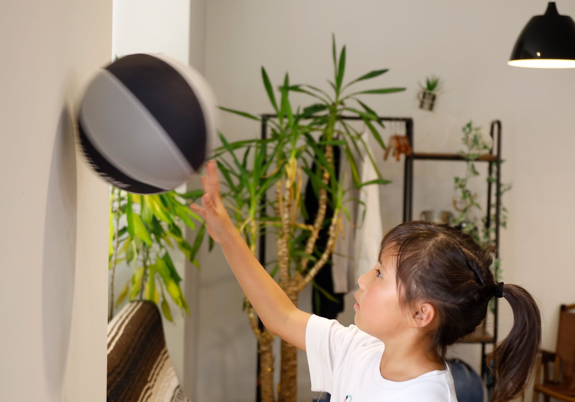 いつでもボールに触れられるのでハンドリング強化に最適。ボール表面が柔らかい素材のため、壁紙や家具にも優しく室内で壁パス&リバウンド練習をチャレンジできます。床やベッドに寝転がって天井に向けシュートすれば、ボールの回転が確認でき、正しいスナップを意識した練習も可能です。