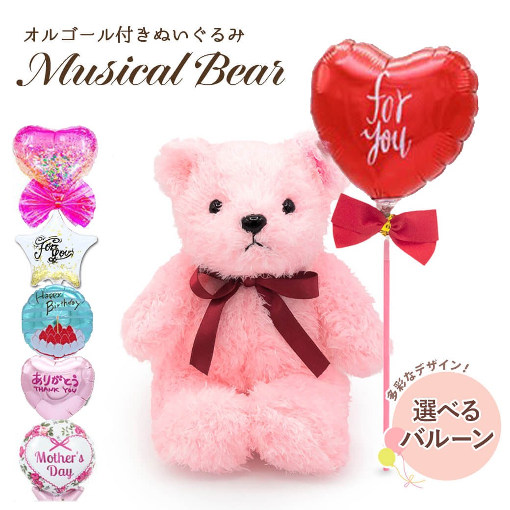 【バルーン電報】ミュージカルベア ピンク