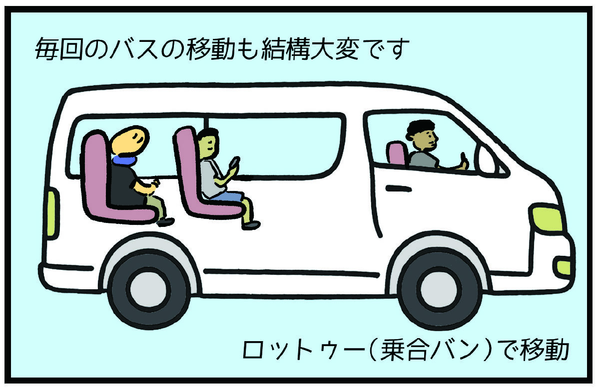 しかし現在、私は車も運転免許も持っておらず、移動はすべて、長距離バスやロットゥー(小型の乗り合いバン)を乗り継いで行っています。