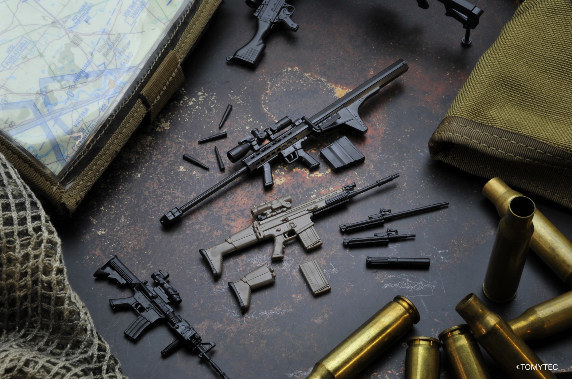株式会社トミーテックより2014年3月に発売した、1/12スケールのリアルな銃火器を中心としたプラモデル。1/12という手のひらサイズながら、精密なディテールはもちろん、ボルトアクションなどのギミックを搭載した製品も発売。プラモデルとして組み立て、銃のミニチュアコレクションとして楽しめるのはもちろん、同等サイズの可動フィギュアやドール、ロボット系のプラモデルに持たせて遊ぶことも可能。