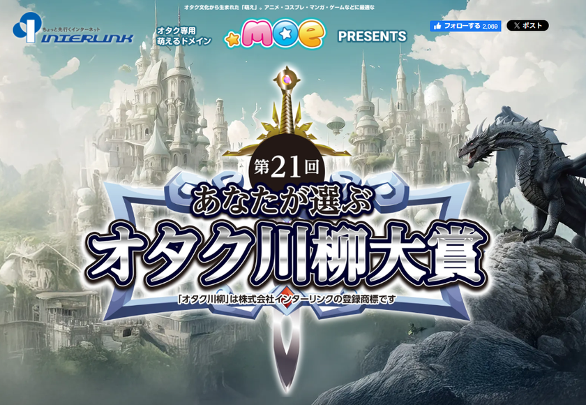 上級者向け(使う人のあまりいない)の特殊な(微妙な)サービスを提供する、インターネットサービスプロバイダーの株式会社インターリンク(東京都豊島区、代表取締役:横山 正、以下 インターリンク)は、『「第21回あなたが選ぶオタク川柳大賞」~オタク専用萌えるドメイン「.moe」PRESENTS~』(以下、オタク川柳)の投票受付を公式サイト(