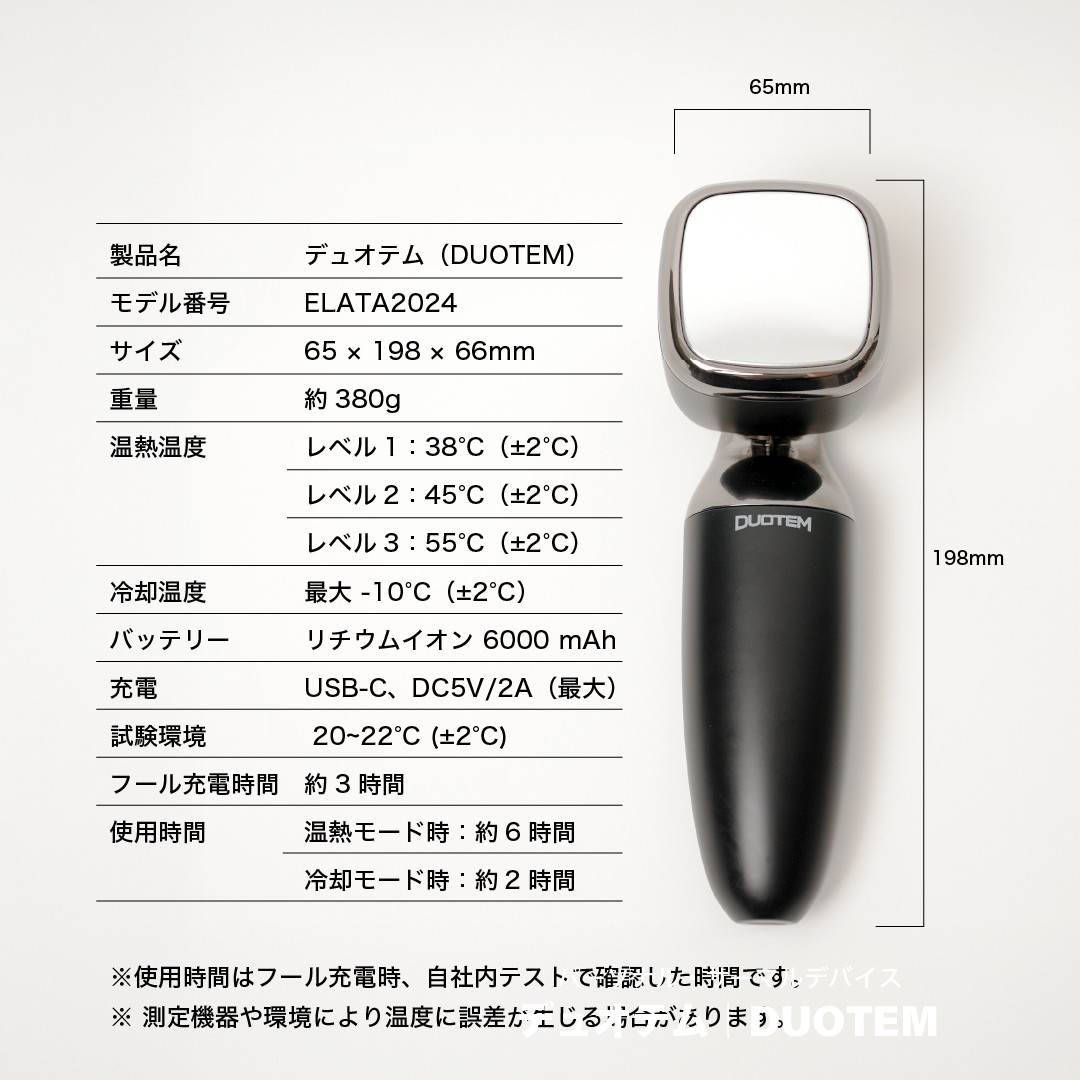 * モード: 冷却モード(〜-10℃) / 温熱モード(38℃/45℃/55℃)