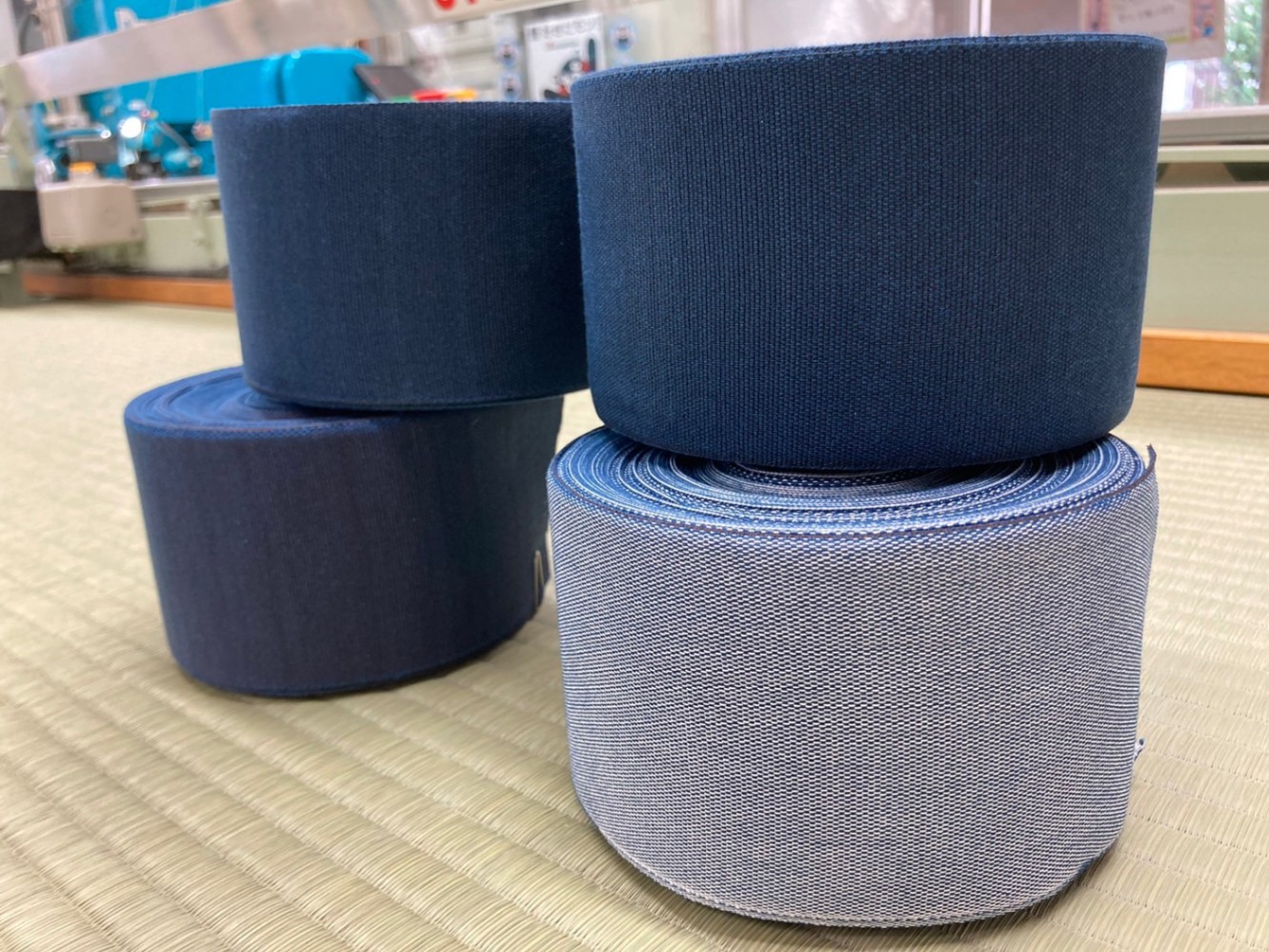 試行錯誤の末、ついに完成したのは、**染めた糸と3色の綿糸よって異なる3種類の藍染畳縁**。化学染料では決して出せない、深く、温かみのある「本物の青」が誕生したのです。