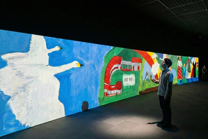 「拓く」:大川小学校の壁画を実寸高で投影し、来場者の参加で壁画を修復する体験型展示