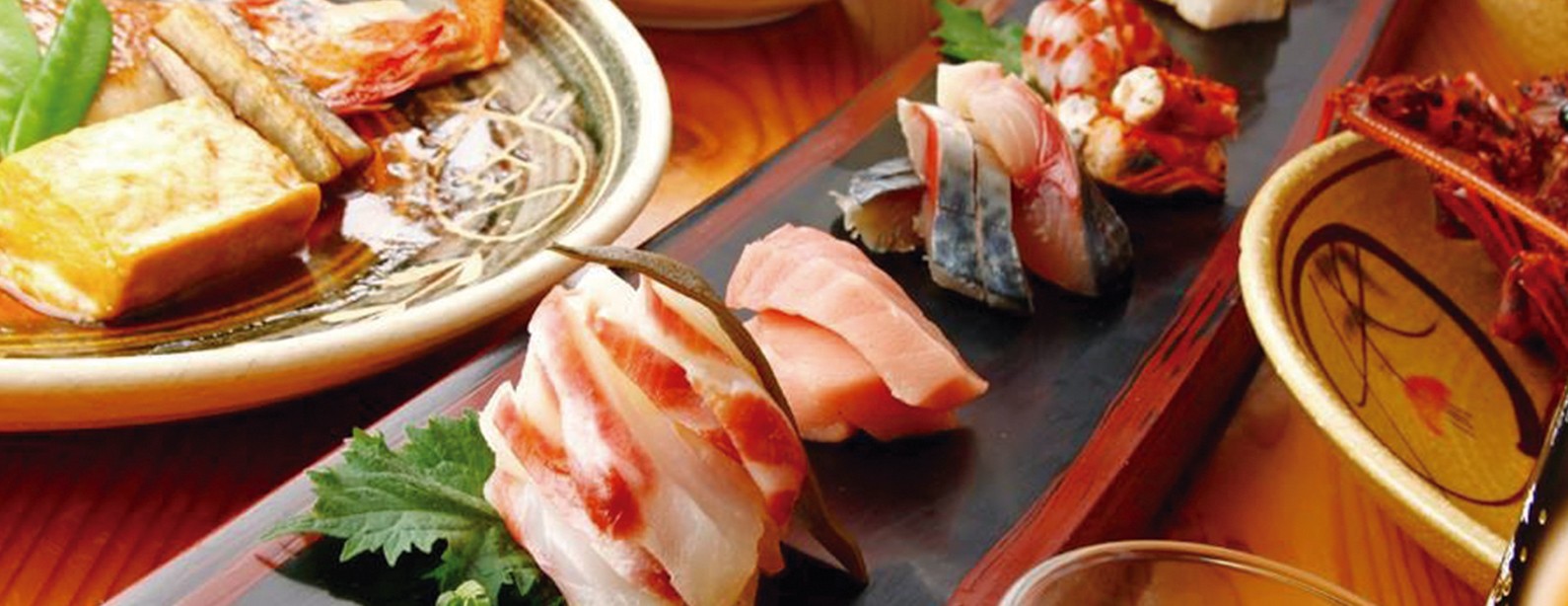 近海の地魚を中心に新鮮な魚介を、心を込めてこだわりの器で提供する日本料理。氷を敷いた皿に豪快に盛る造り盛り合わせや水と醤油のみで仕上げる煮魚など、素材の旨みを生かした料理が魅力です。名物の「鯛めし」は上品な鯛の旨味が一粒一粒に染み込んでいて絶品な味わい。個室も完備され、落ち着いた空間でゆっくりとお食事をお楽しみいただけます。
