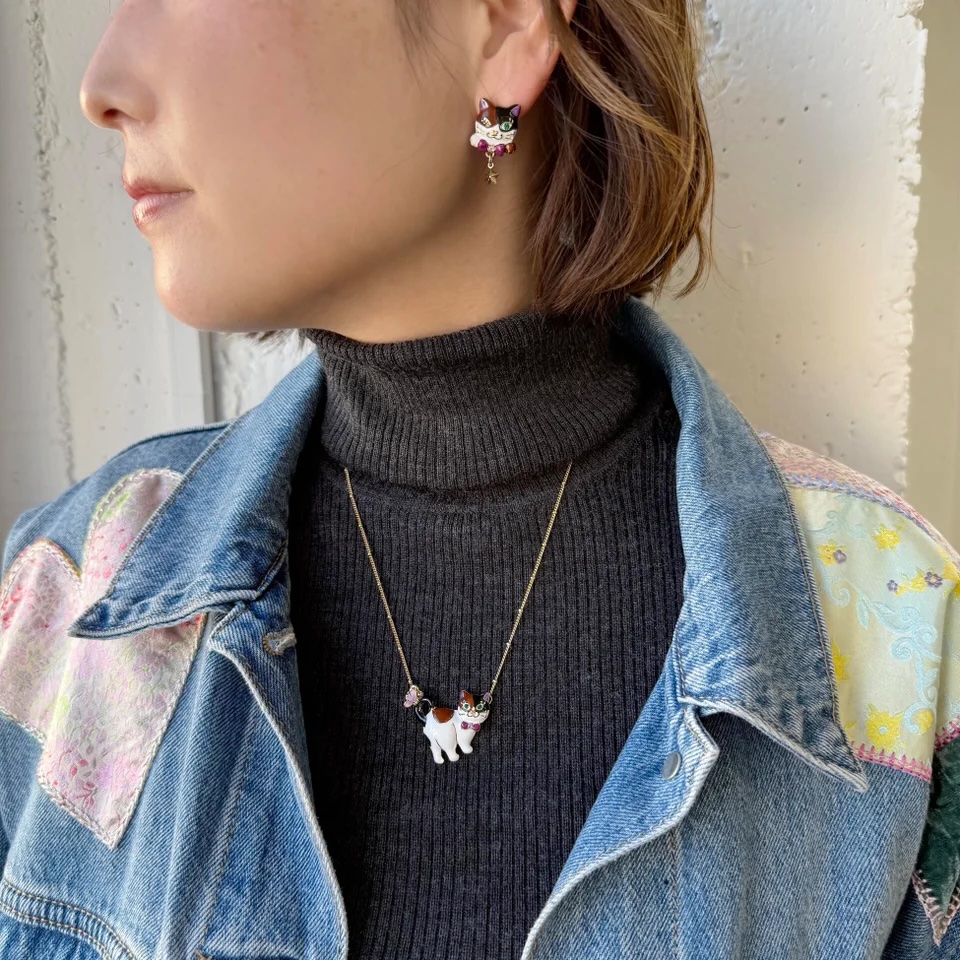 ラインアップはネックレス、ブレスレット、ピアス、ショートネックレスなど。手元や胸元にさりげなく猫を忍ばせるデザインで、日常のコーディネートを格上げしてくれます。