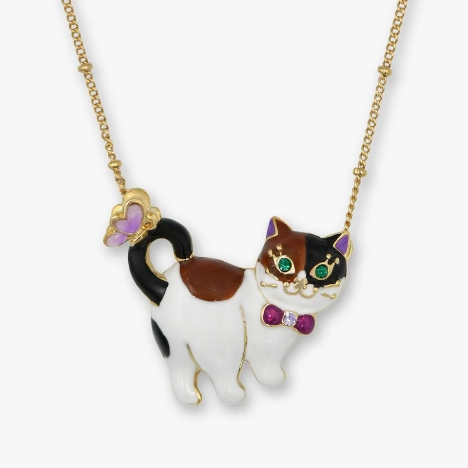 ゴシックでロマンティックな世界観が魅力の『ANNA SUI』からは、アイコンキャットである「TITI(ティティ)」シリーズの新作アクセサリーが登場しました。今回の主役は、振り返る仕草が愛らしい三毛猫モチーフ。パープルのリボンや尻尾にとまった蝶など、ブランドらしい幻想的なディテールが光るデザイン。