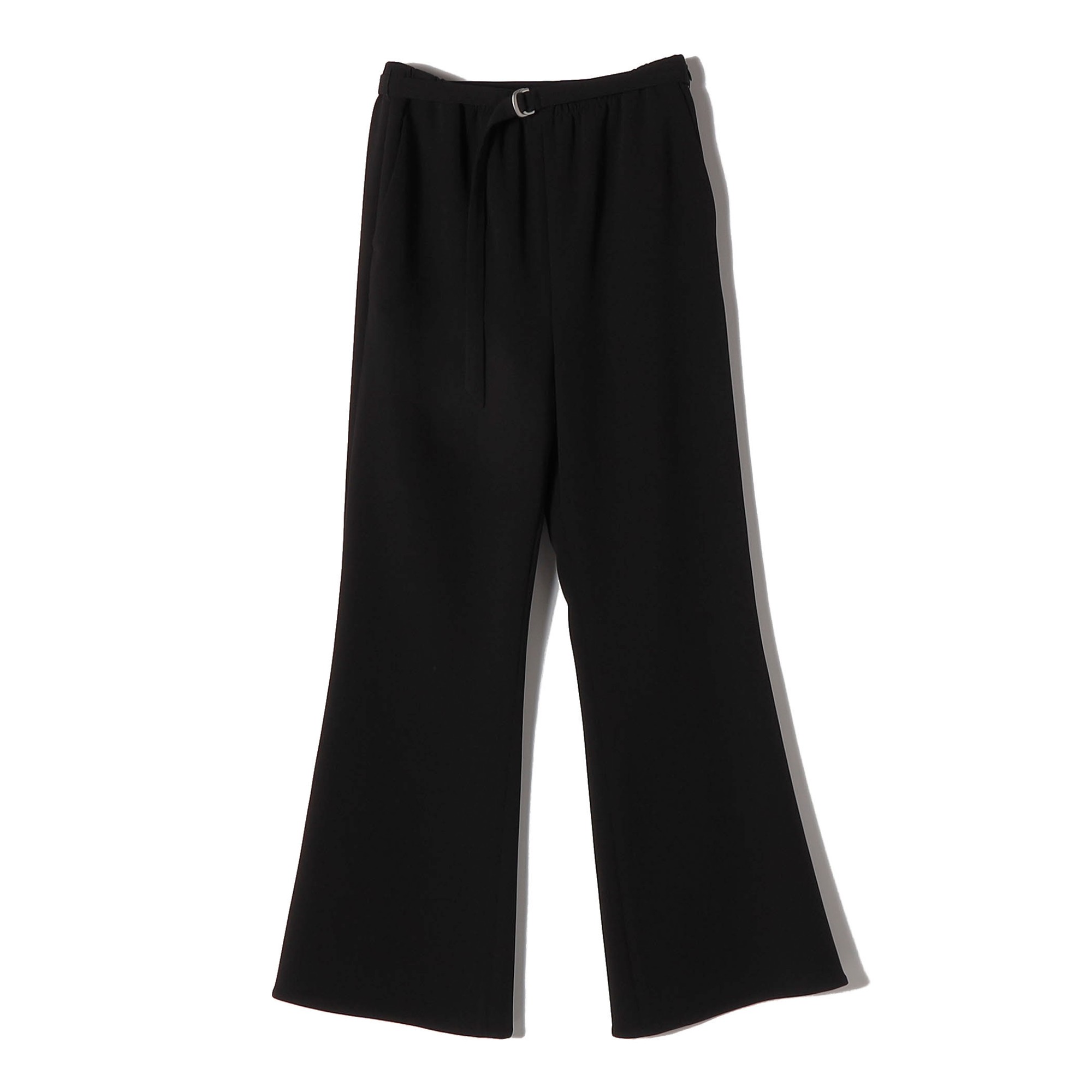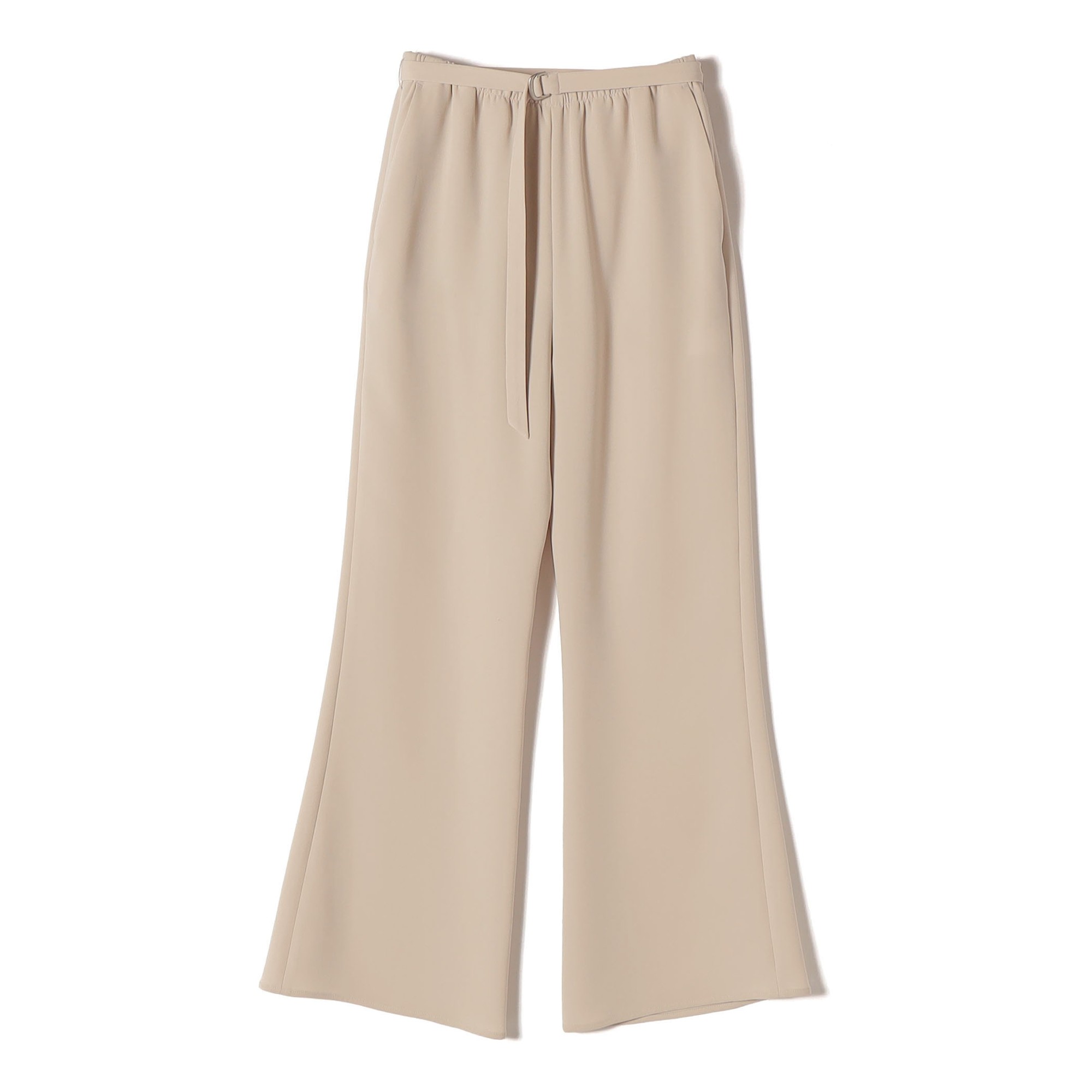 ミニマルなデザインで、きれいめにもカジュアルにも自然になじむ万能パンツ。ふくらみのあるダブルクロス素材が立体的で美しいシルエットを描き、程よく広がるフレアラインが上品な大人の印象を演出します。ストレッチ性を備えた快適な穿き心地に加え、リップやスマートフォンなどをさっと収納できる深めのポケット付き。日常のシーンに寄り添う、実用性も兼ね備えました。