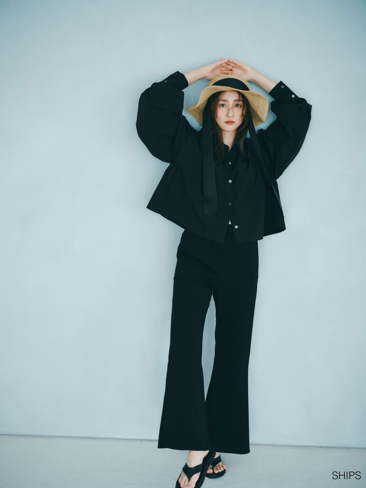 撮影衣装の着用時間って、長くても30分程度。そのわずかな時間でも、着心地のいい服を着たときは気持ちが上向くんです。その逆で、着心地が悪いと、気持ちもそっちに寄っていってしまう。着るものひとつで気分が大きく左右されることを知っているからこそ、自信をもって勧められる着心地に仕上げました。デザインの良さは大前提として、着たときの肌触りや扱いやすさはSHIPSさんと何度も話し合い、実現できました。
