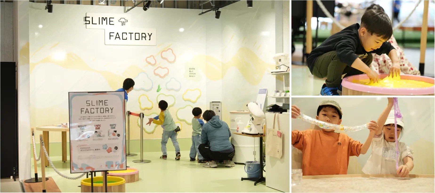 「見る」「遊ぶ」だけではなく、触れて、動いて、作って、撮って楽しめるのがスライムファクトリーの魅力です。