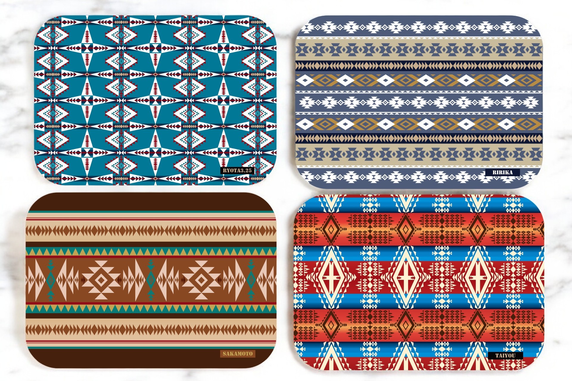 ブルーやブラウン、レッドなど、それぞれ異なる雰囲気を持つ4つのネイティブ柄をご用意。好みに合わせて選べます。