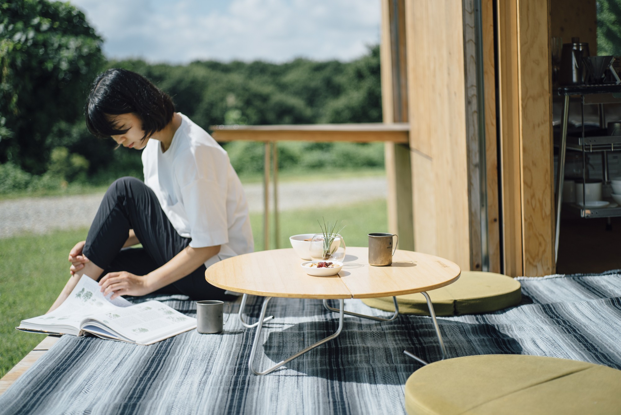 スノーピークSnow Peak の製品を使い、自ら豆を挽き、丁寧に淹れる。そんな贅沢な朝をお過ごしいただけるセットをご用意しました。ウッドデッキでくつろぎながら、広がるコーヒーの香りに癒されて特別な一日の始まりを演出します。