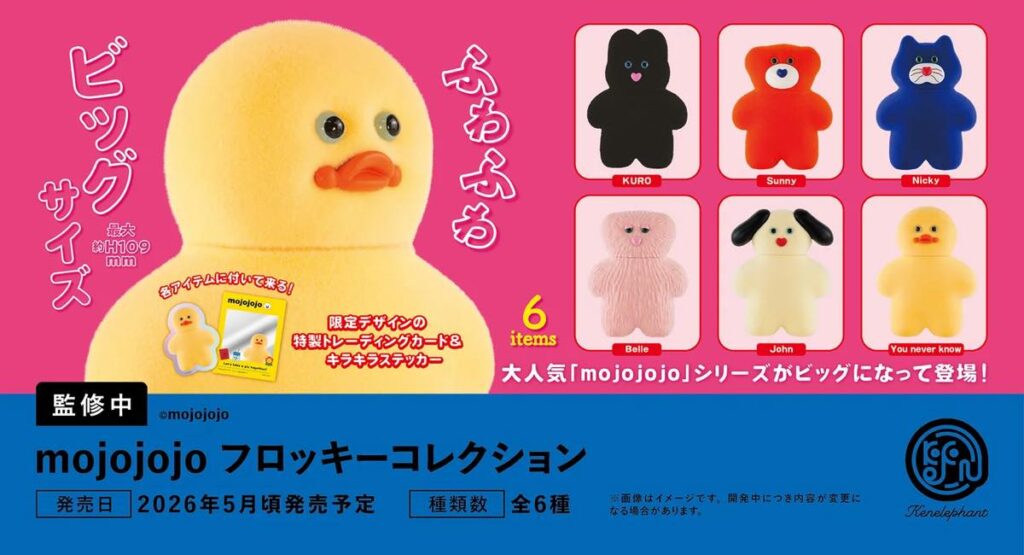 アート雑貨メーカー、株式会社ケンエレファントによるフィギュアシリーズの最新作は、「Todd Friends」を立体化した「mojojojo フロッキーコレクション」。最大約11㎝の高さがあり、表面にはフロッキー加工が施され、ぬいぐるみのようなやわらかな手触りを再現しています。