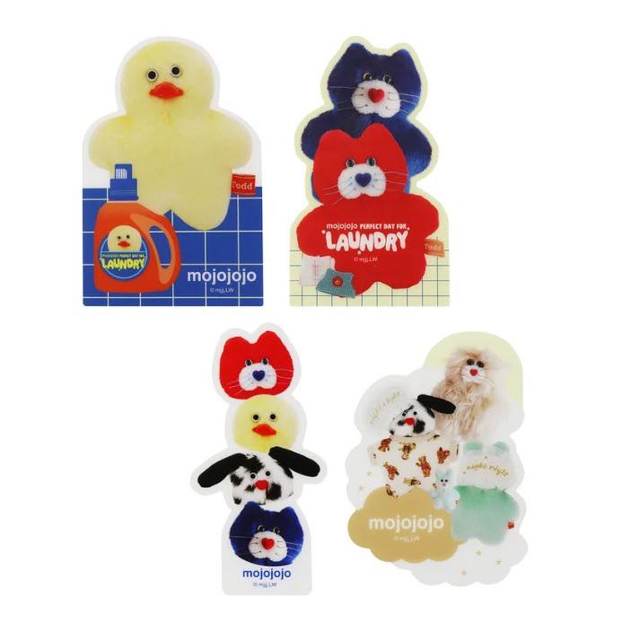 「mojojojo」作品の代表的なシリーズ「Todd friends」が、青空の下で洗濯を楽しむ姿が盛りだくさん!キーホルダーやブックマーカー、シール、メモなどにデザインされています。