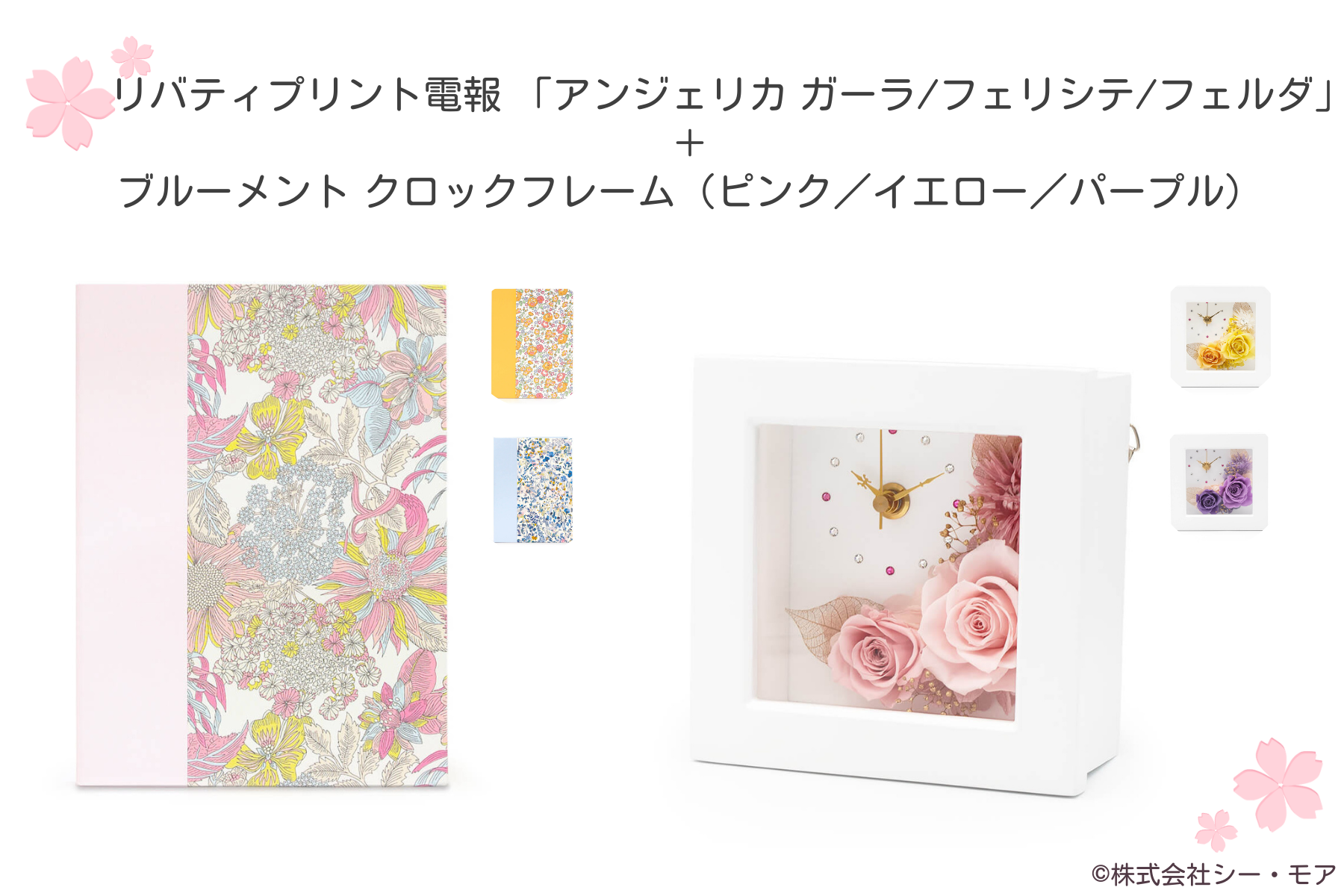 ギフト商品:ブルーメント クロックフレーム(ピンク/イエロー/パープル)