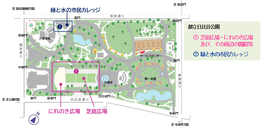 都立日比谷公園 芝庭広場・にれのき広場及び