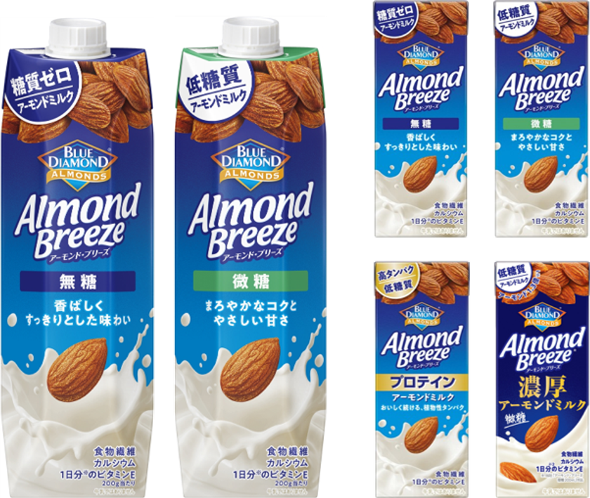 「アーモンド・ブリーズ(R)」は、カリフォルニア産アーモンド本来の美味しさを活かした、すっきりとした甘さが特長のアーモンドミルクです。