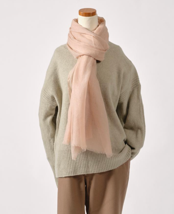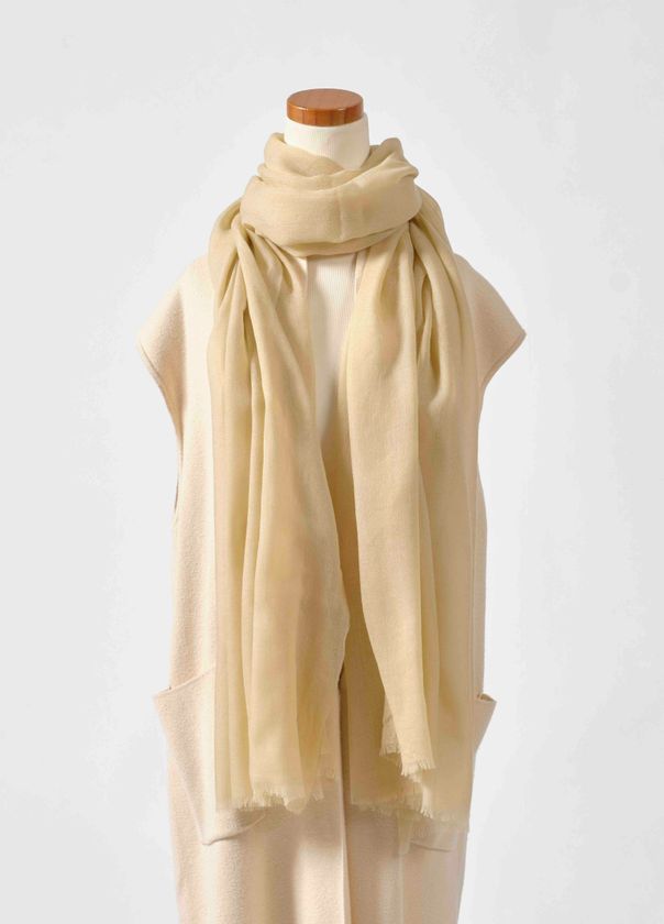○ショール素材は、チベット高原の環境再生プロジェクトにも取り組むエシカルブランドSHOKAYのヤク毛を使用。