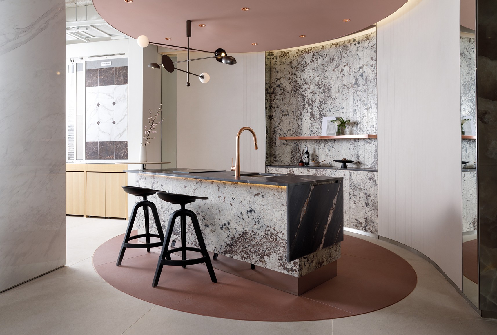 新ブランド「TILURA」が提案する、セラミックキッチンのモデルブース。