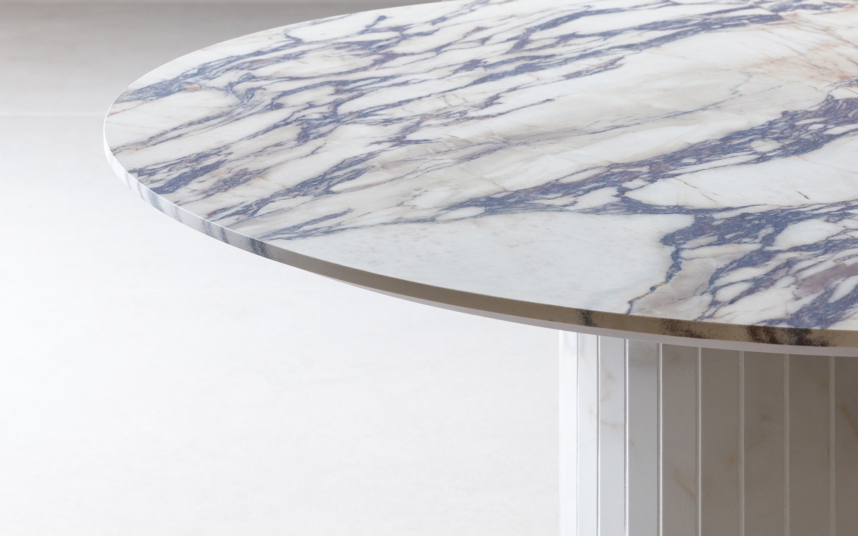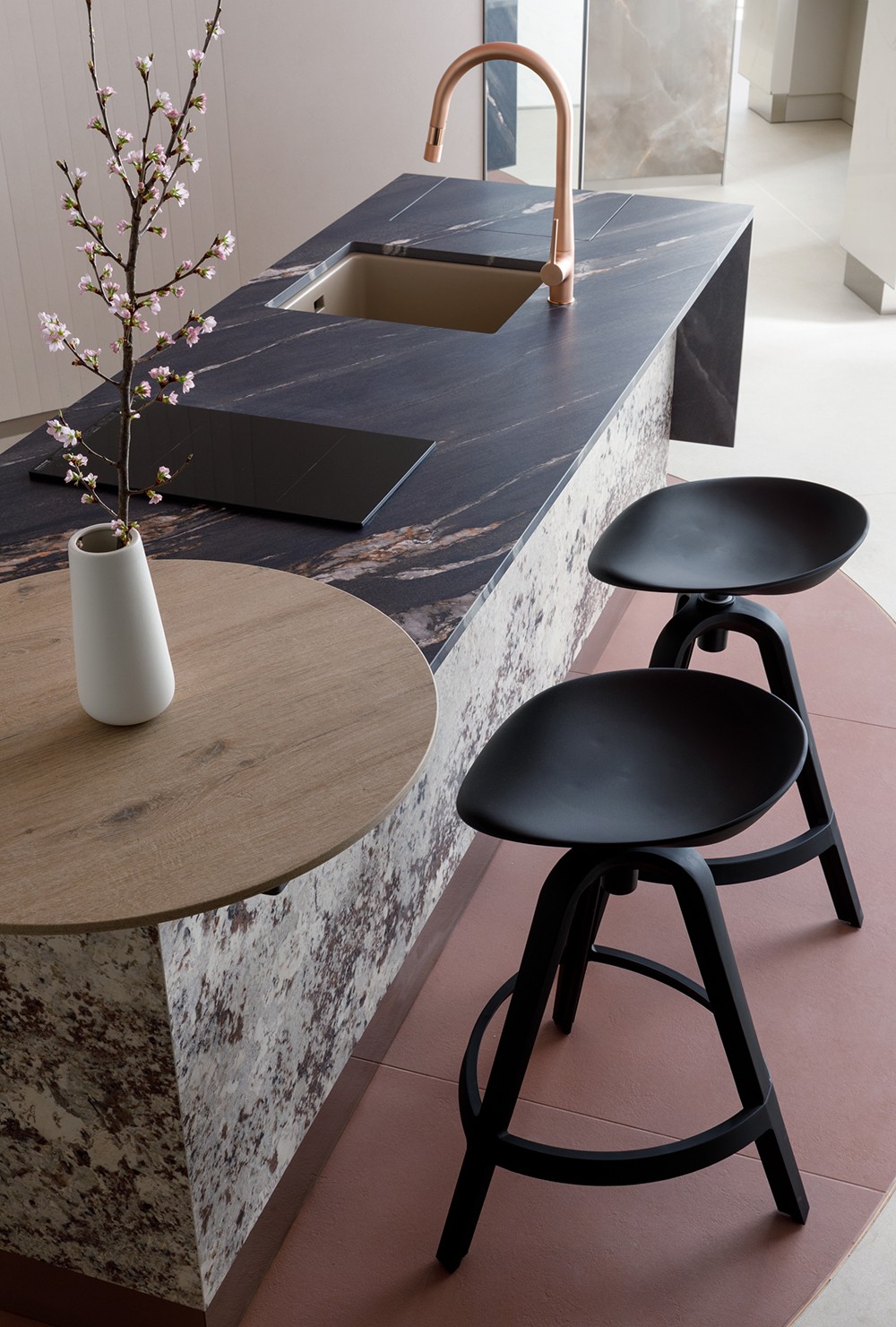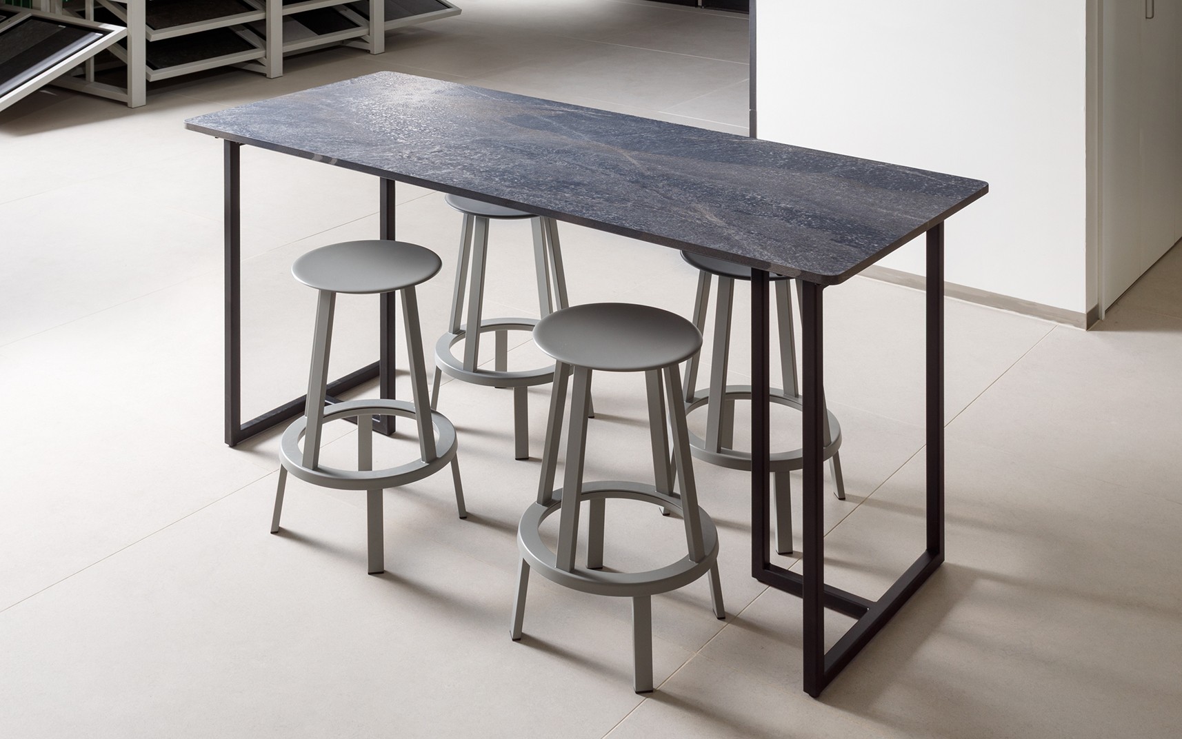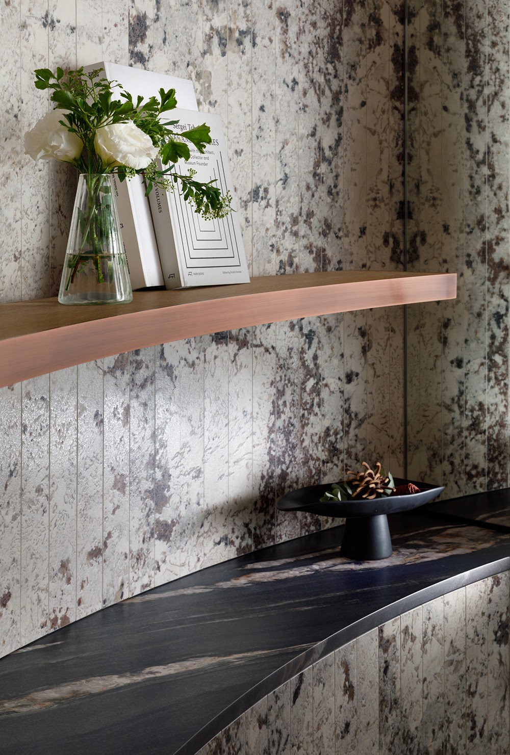 超大判タイルから切り出したテーブルトップは、イタリアのトップブランドメーカーによって製造されたものです。セラミックファニチャーに採用している4D CERAMICSは、独自の製造技術によりタイル内部まで柄が連続するフルボディ構造を実現。切断面や小口にいたるまで、まるで天然石のような深い美しさを表現します。空間に美しくなじみながら、確かな存在感を放つセラミックファニチャーの魅力をぜひご覧ください。